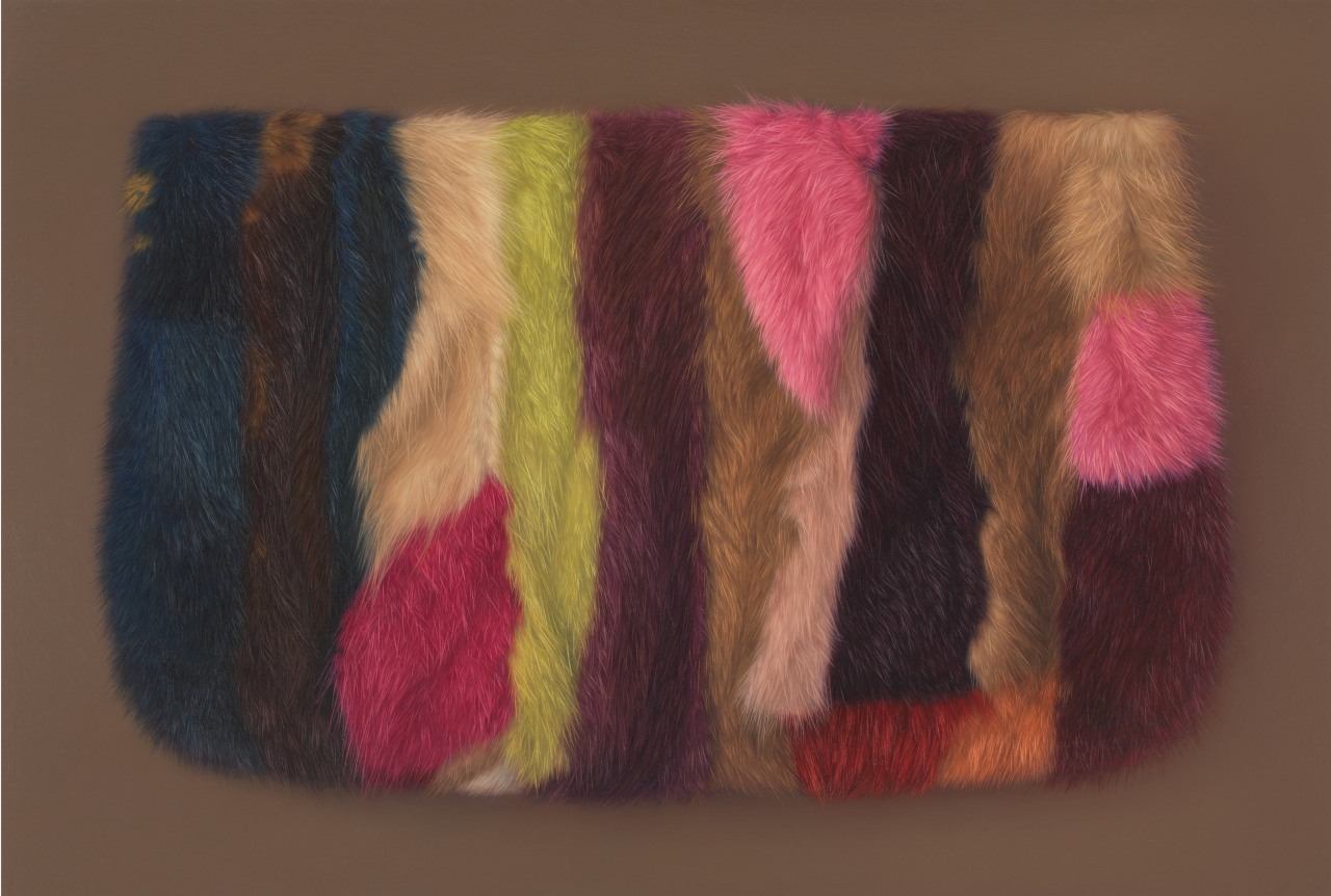 Victoria Gitman’s work intertwines the experiences of vision and touch, exploring the tactile pull inherent to painting and the circuits of desire it generates. In her representations of vintage costume jewelry, her depictions of beaded purses and fur handbags, and in her current works based on vintage sequined garments, the artist has focused on the rich material textures of these objects. Painting bead by bead and hair by hair from close, direct observation, Gitman creates surfaces that are soft and seductive, yet austere in their precision. Many of the works feature abstract patterns reminiscent of early and mid-twentieth century painterly traditions. Evoking modernist compositional techniques, Gitman’s paintings are resolutely frontal, with the imagery in her recent works extending nearly edge to edge. The works create an alignment between the represented objects and the picture plane, pointing to the implicit identification of the painting’s surface as feminine and bringing to the fore the traditionally gendered structure of the painting-viewer relationship.