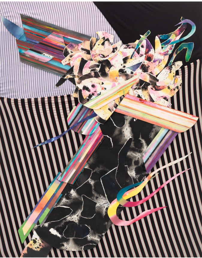 This exhibition provides an in-depth look at Loving’s work from 1977 to 1993—a period of immense transformation for an artist with a keen eye for color and an ever-changing attitude toward form and composition. Chiefly inspired by Henri Matisse, Loving’s first mature works were geometric, hard-edge abstractions, painted in bright colors. His solo show at the Whitney Museum in 1969 featured these bold, simplified color studies. Despite the early critical and commercial success of this exhibition, after 1972, he began his most experimental phase, making use of sweeping expanses of richly colored fabric suspended on the wall. Made from torn canvas, these wall-hangings dispensed with notions of centralized composition, figure/ground separation, and pictorial frame. Their rich and intuitive array of colors stretches irregularly, extending to the floor, encompassing the surrounding space, and engulfing the viewer.