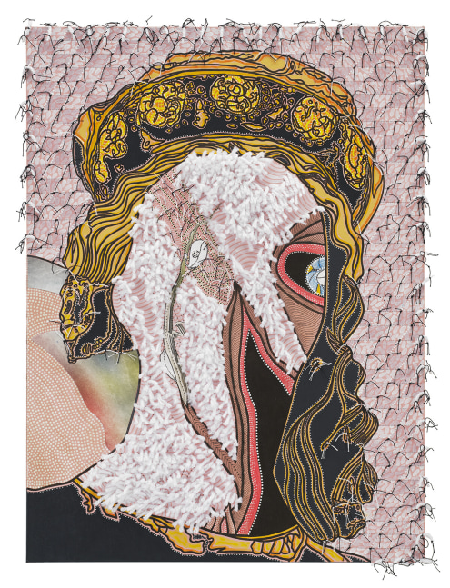 Though sometimes affiliated with movements like “Nut Art” or Pattern & Decoration, Petaluma, California–based artist Franklin Williams has assiduously resisted categorization. A longtime and beloved teacher at the California College of Arts and San Francisco Art Institute, Williams has worked independently—largely in isolation from the art world—for more than six decades, quietly limning a personal cosmos via the masterful execution of vernacular handicraft and a meticulous, delicate line. The selection of mixed-media paintings on view here, all made in 2020 and 2021, are examples of the artist’s recent experiments in portraiture, featuring distorted visages adorned with dense patterning and crocheted passages of thread and yarn.